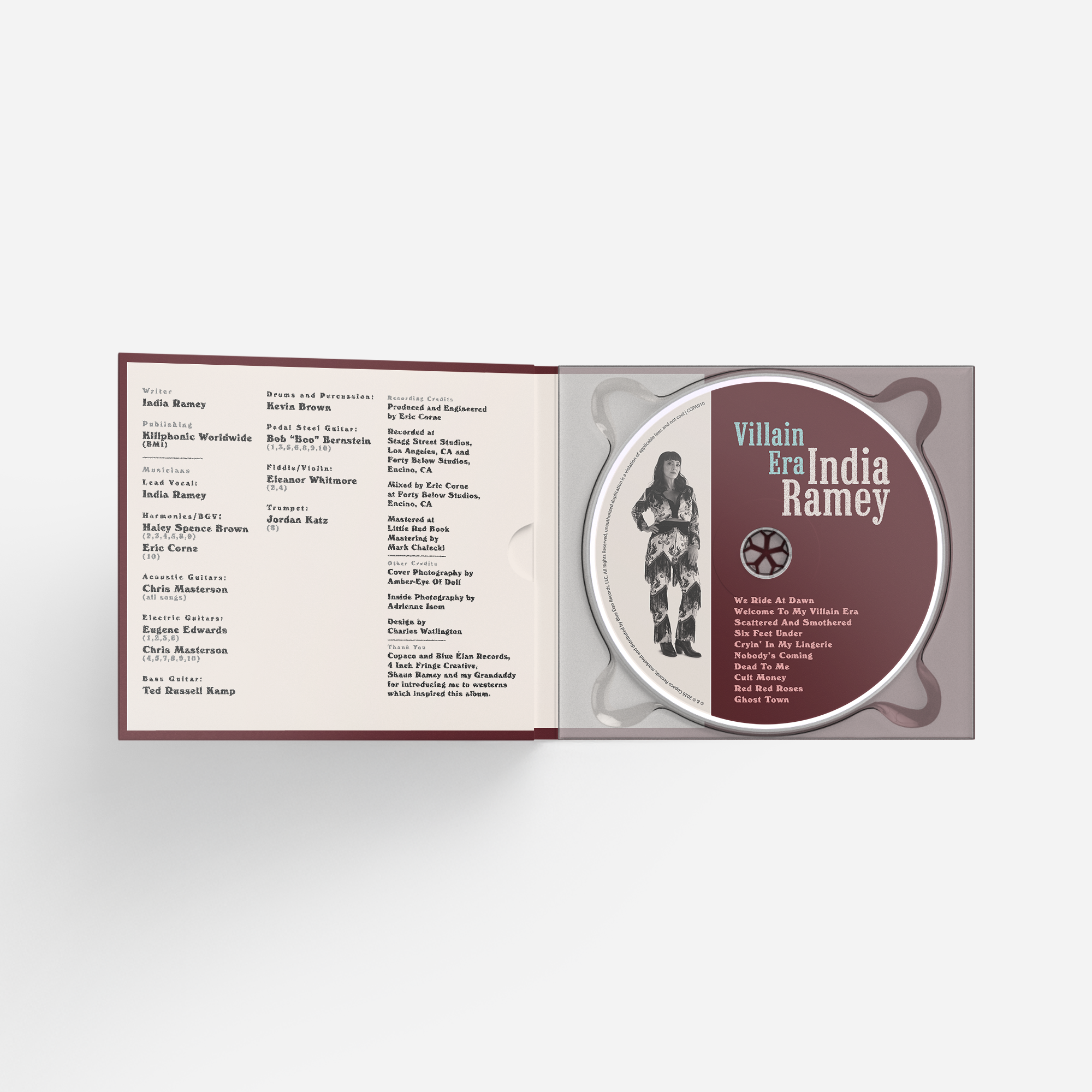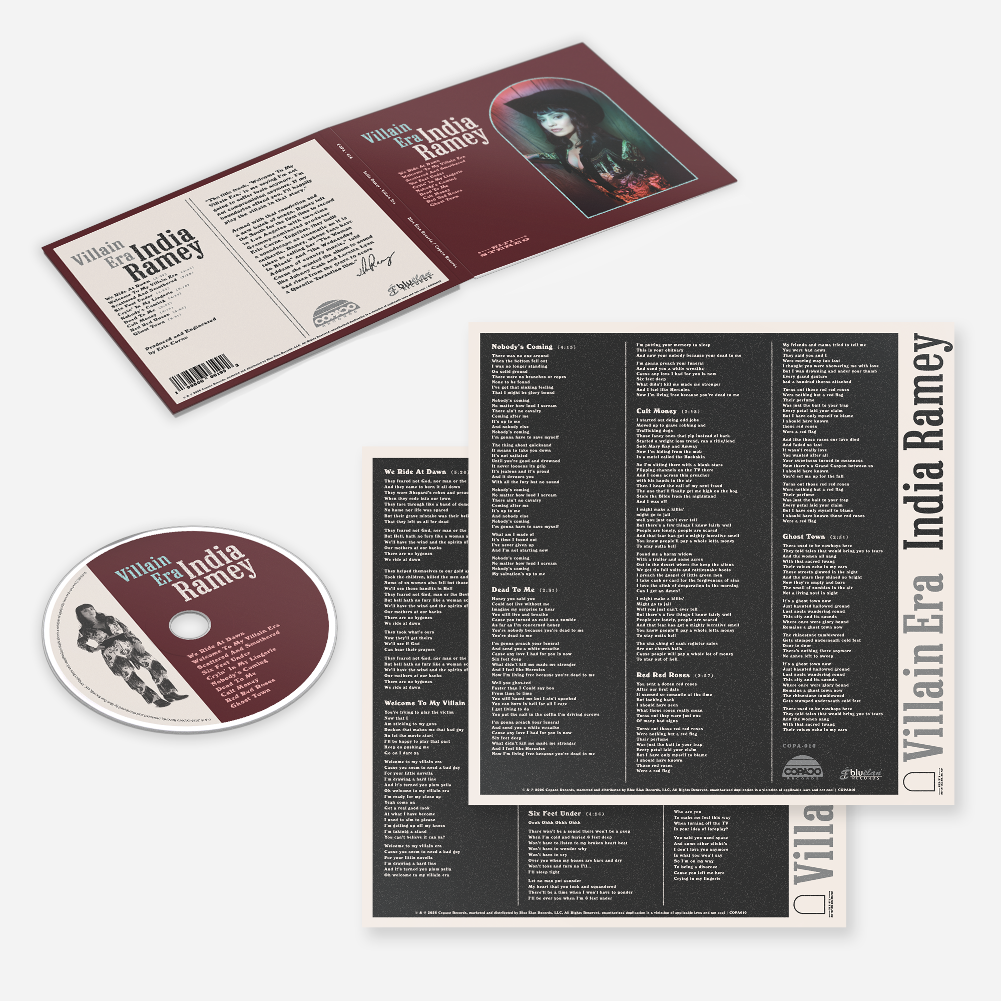 After the success of her fiery 2024 LP, Baptized By The Blaze, Nashville outlaw siren India Ramey is back with Villain Era, set for release on May 8, 2026, via Copaco Records/Blue Élan. Baptized By The Blaze was the story of Ramey’s journey through the fire, a harrowing passage toward healing and empowerment. Villain Era is firmly rooted in her own reckoning; it doesn’t ask for permission, it kicks the door wide open.